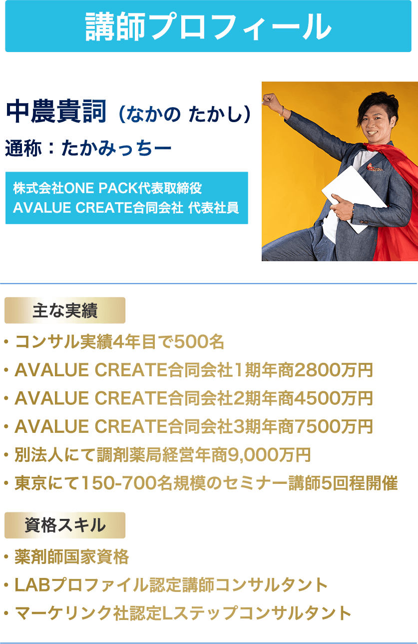 TMC【Total Mission Creator】を提供する人気起業塾講師として活躍中。