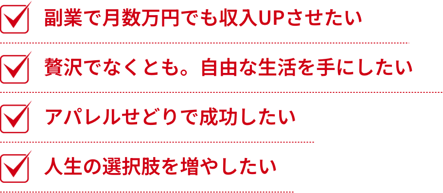 月利10万までのアパレル~バッグ小物全てが一気に学べます。