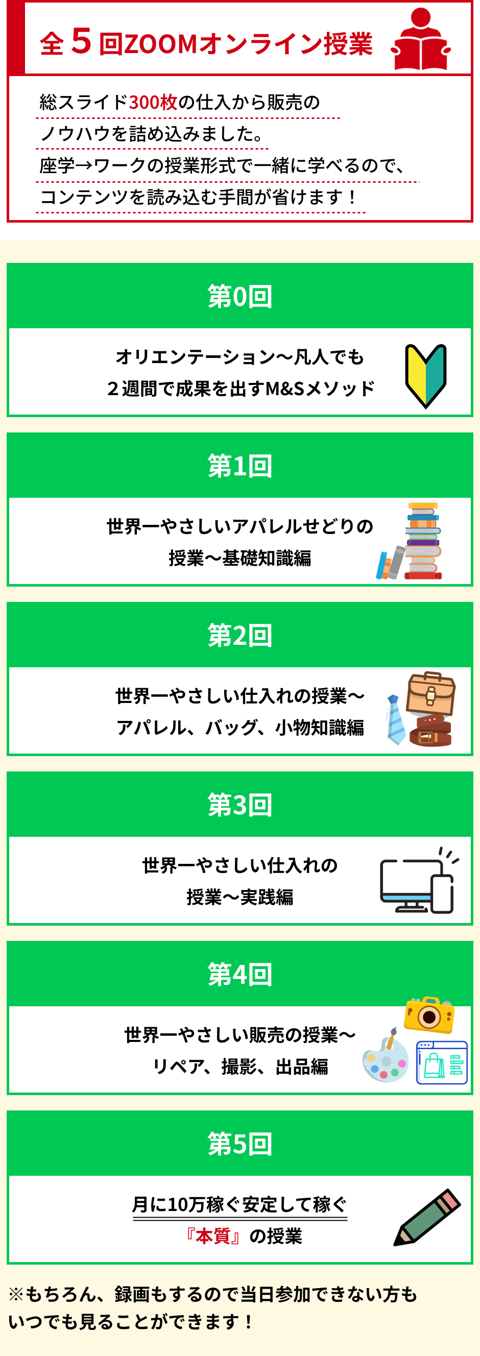 「世界一やさしいアパレルせどりの授業 2週間Ver」です!