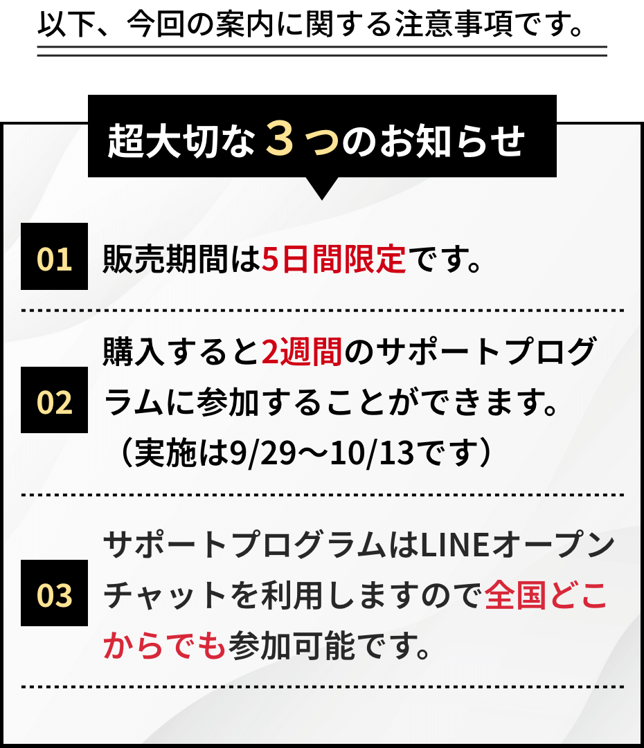 逆に、今しっかり安定して月利10万以上稼げている人は参加する必要はありません。